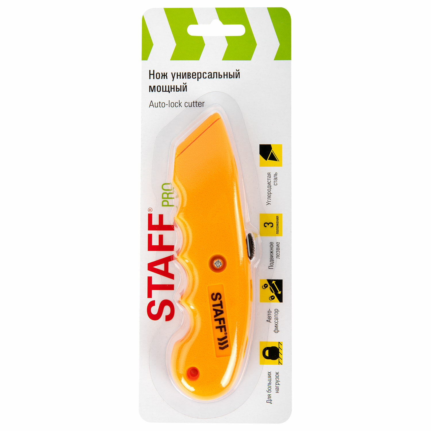 ОстальноеНож универсальный мощный STAFF PRO, автофиксатор с 3 положениями, ABS пластик, 238733