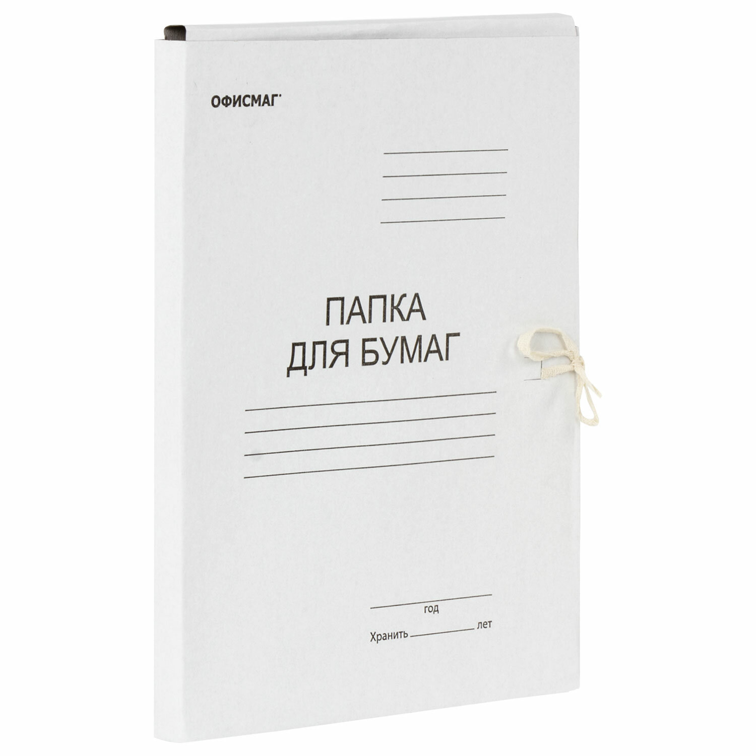 Папка для бумаг с завязками картонная ОФИСМАГ, гарантированная плотность 280 г/м2, до 200л, 124569