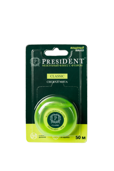 ОстальноеPRESIDENT Classic Свежая мята межзубный флосс с фтором, вощёный 50 м
