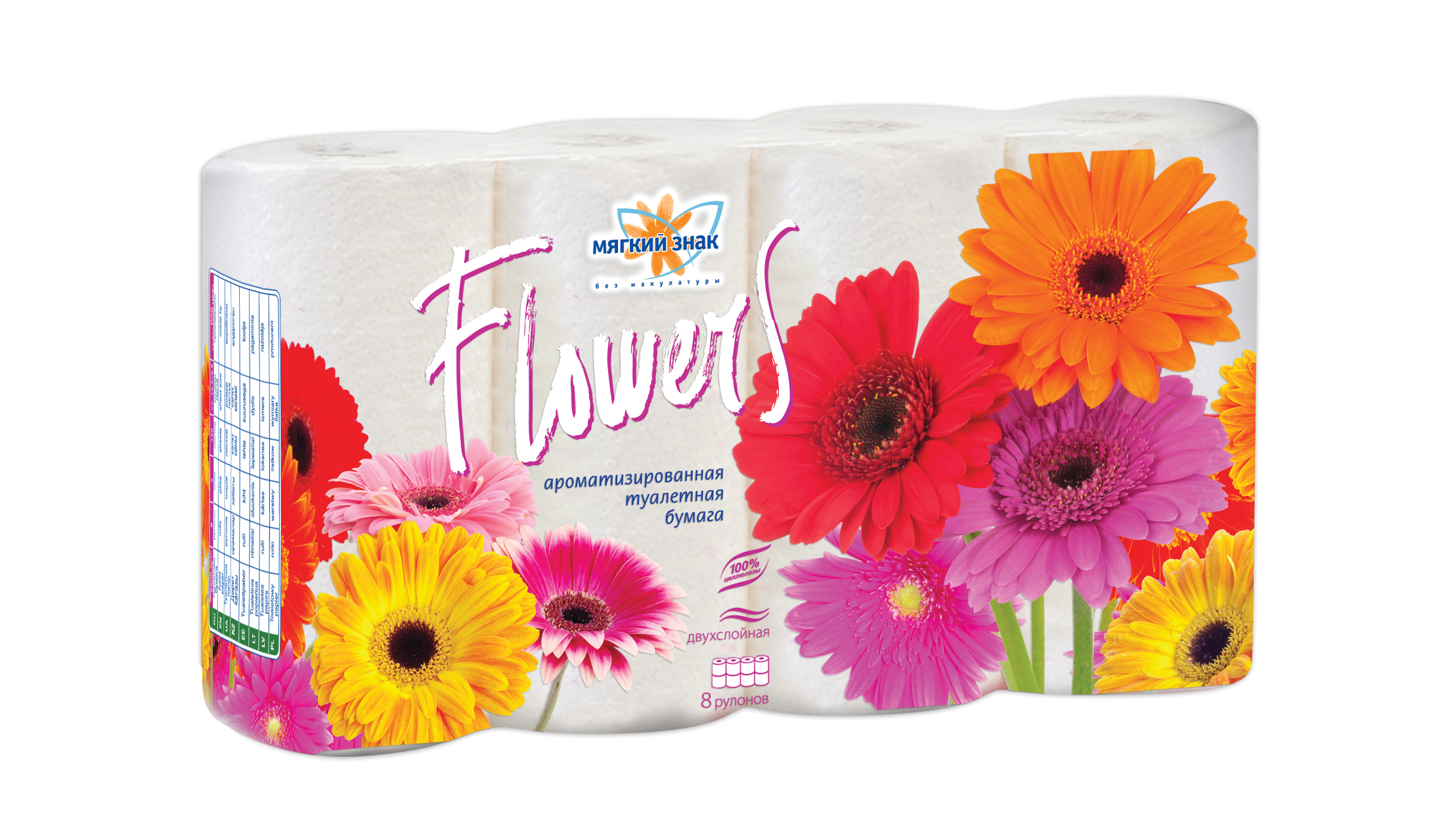 Туалетная бумага Мягкий знак Flowers 2-сл. 8 рул. белая/вл.7 С56